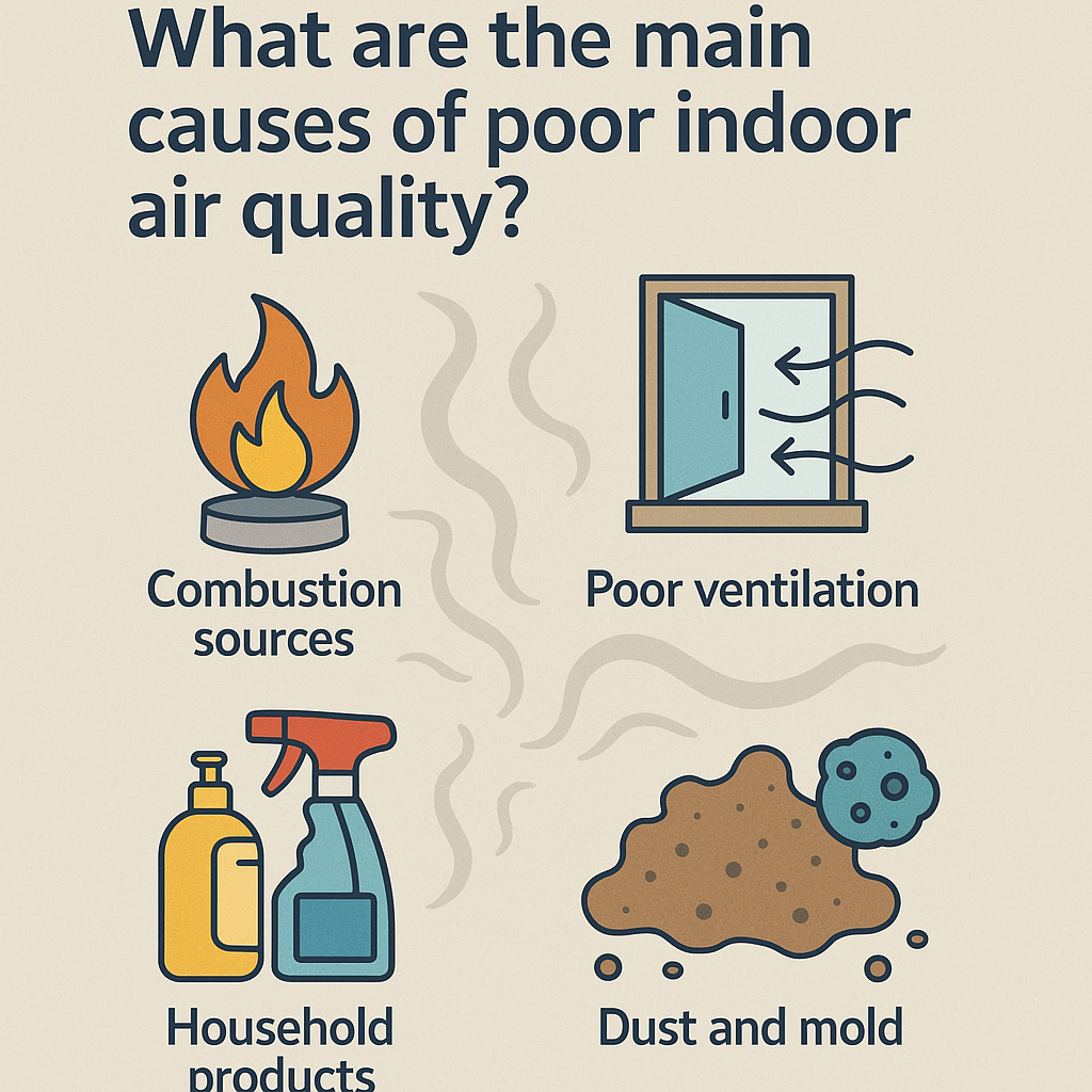 Poor indoor air quality can be caused by a number of factors, including inadequate ventilation, high humidity levels, and the use of certain building materials and household products that release harmful chemicals. Additionally, poor maintenance of HVAC systems and the presence of mold, dust, and pet dander can also contribute to indoor air pollution. It’s essential to take steps to improve indoor air quality, such as regular system maintenance, proper ventilation, and using air purification systems. At Aire Central, we can help identify potential causes of poor air quality and provide solutions that can improve the health and comfort of your home or business.